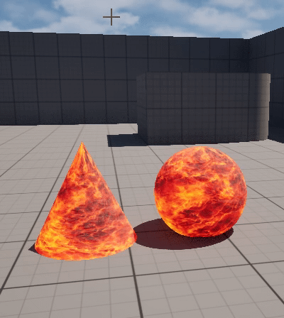 이렇게 기본 텍스처만 입혀도 이미 ‘불타고 있는 돌’의 느낌이 나서 만족스러웠습니다. 하지만 여기서 끝내면 강의에서 배운 내용을 전혀 활용해보지 않아서 기능들을 더 사용해보기로 했습니다.