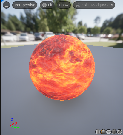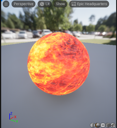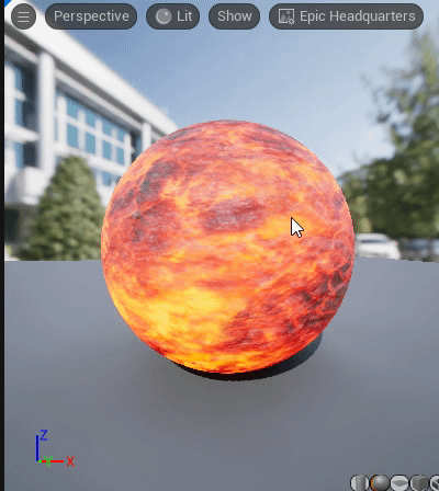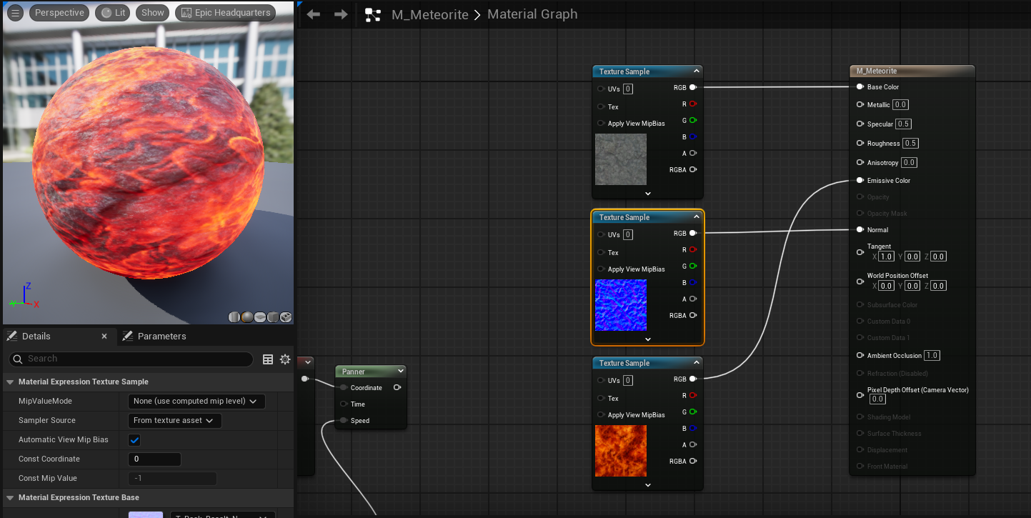 그래서 저는 아래 사진과 같이 불타는 운석 느낌이 나게 머티리얼을 구현하는걸로 변경하였습니다.